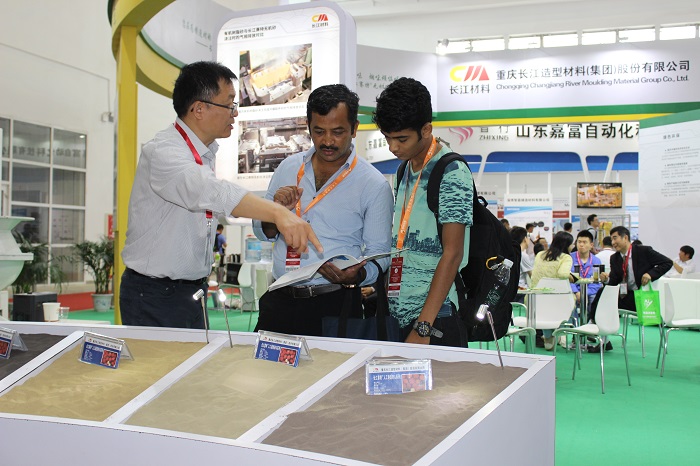 展位前人气特别旺盛。长江材料绿色产品为铸造企业解决铸造时气味和烟味的烦恼。特别是长江材料赛特无机砂的现场演示,十分吸引来来宾驻足观看了解,他们仔细询问其生产工艺与技术的情况,亲自体验环保铸造材料。